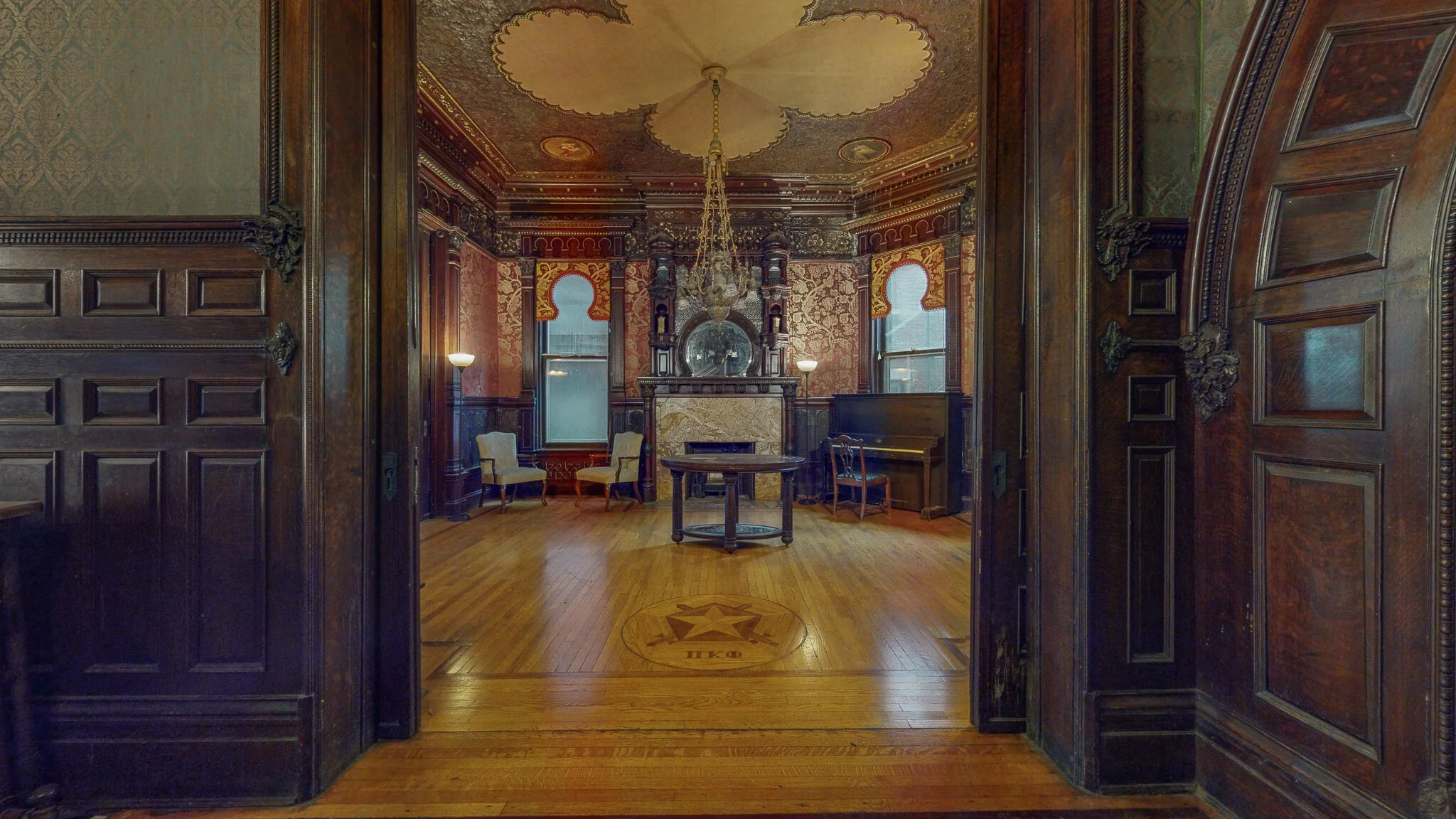 ◼ Water is the enemy in old houses. In the late 1980s the southwest corner of the ceiling, including one of the portraits, fell down from a water leak in the Master Bedroom above. With the mentorship from the fraternity advisor (Prof. Miller), the volunteers learned about butyl rubber molds and rebuilt the plaster leaf pattern over a six month period of nights and weekends.