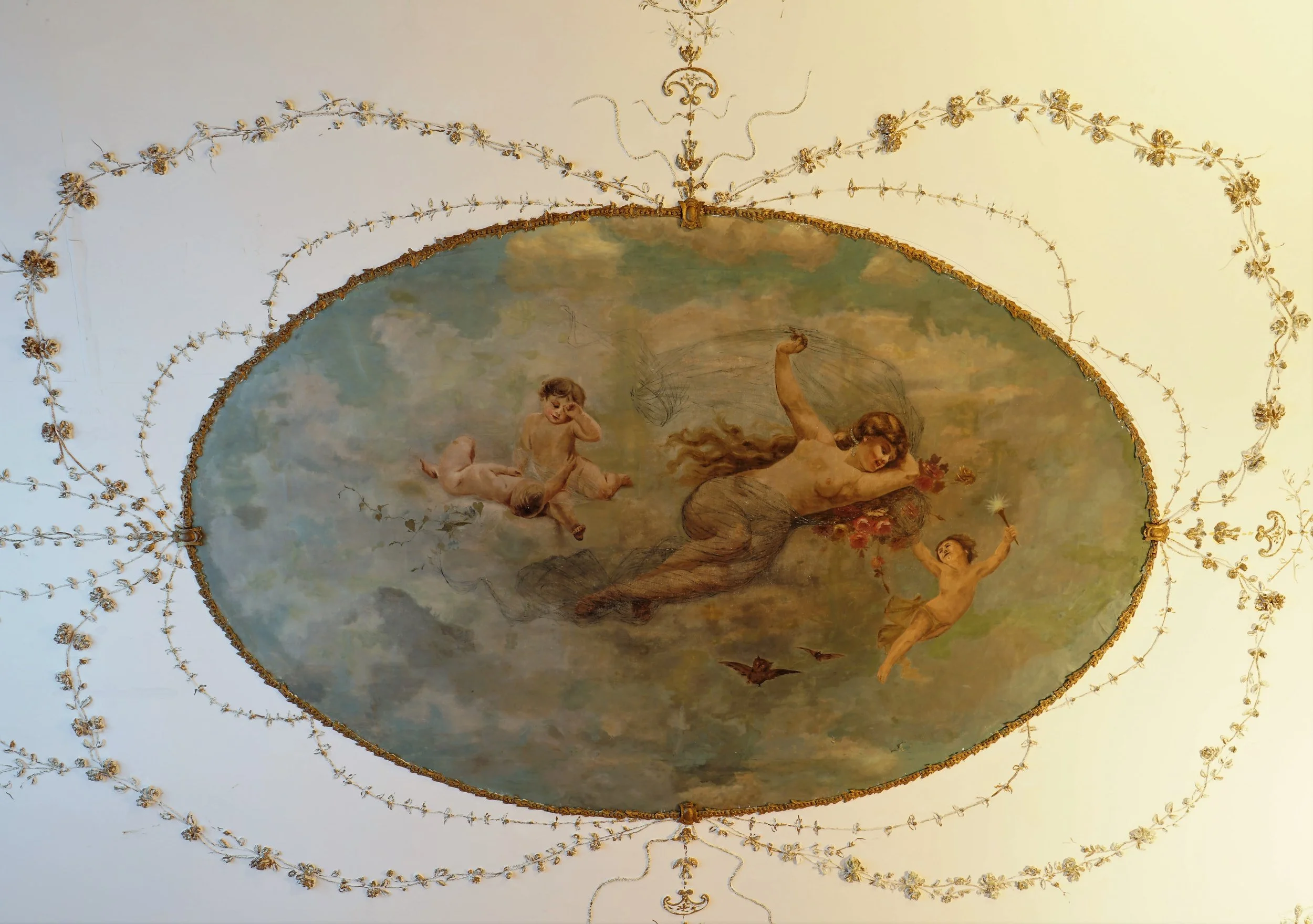 ◼ The ceiling painting represents John W. Paine’s wife Julia Dickinson, and their three children, Estelle, John, and Ogle. -